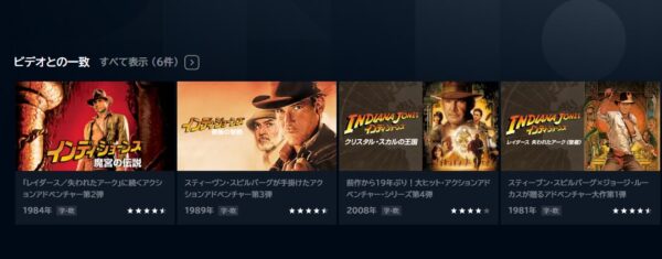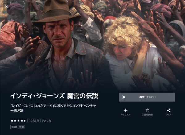 また、映画「インディ・ジョーンズ」の関連作品の映画も視聴可能ですよ。
