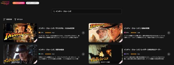 Leminoでの洋画「インディ・ジョーンズ」シリーズの配信状況は以下になります。