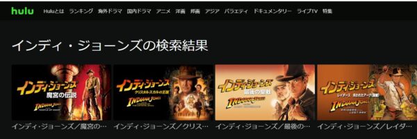 Huluでの洋画「インディ・ジョーンズ」シリーズの配信状況は以下になります。