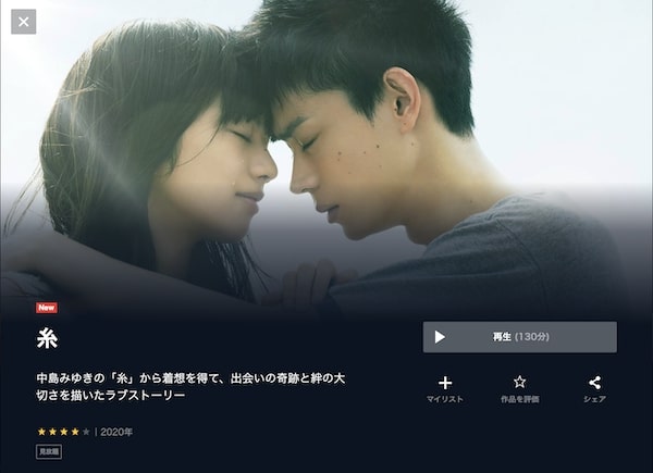 Netflixで映画「糸」を配信しているか調査しました。