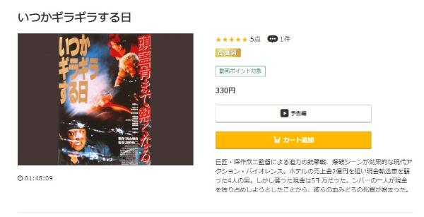 music.jpは、初回登録で1,600Ptが貰えるので「いつかギラギラする日」の映画を無料で見ることができます。