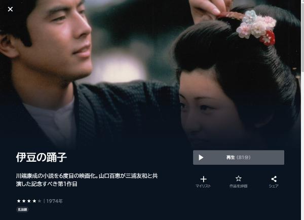 - 映画「伊豆の踊子 1974年」がフルで視聴可能。