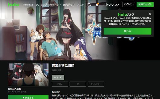Huluでアニメ「異常生物見聞録」の動画を全話視聴