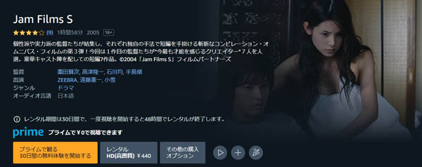 映画「Jam Films S」はAmazonプライムビデオでもフルで視聴することができます。