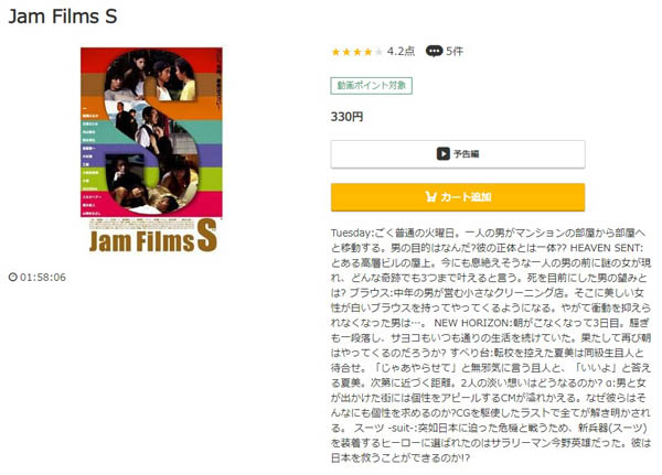 映画「Jam Films S」は330円でレンタル配信してるので、フルで視聴できます。