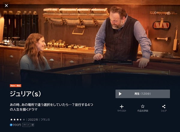 U-NEXTで映画「ジュリア(s)」を視聴するには、990円がかかってしまいます。