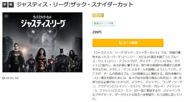 しかし、映画「ジャスティス・リーグ:ザック・スナイダーカット」はレンタル作品のため、299円かかってしまい無料視聴することができません。