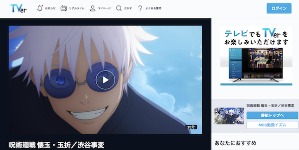 そこで、アニメ「呪術廻戦 懐玉・玉折/渋谷事変(第2期)」がTverで見逃し配信をしてるか調査しました。