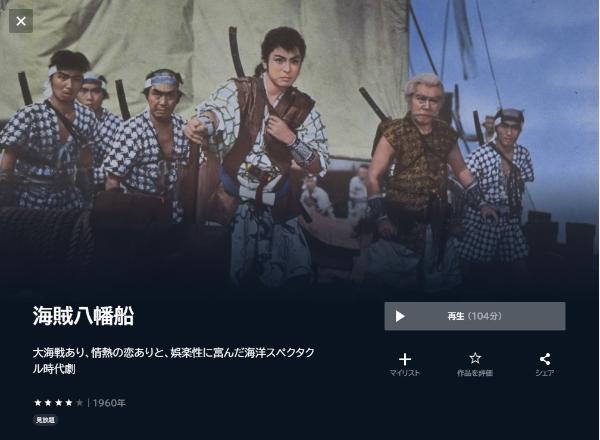 - 映画「海賊八幡船」がフルで視聴可能。