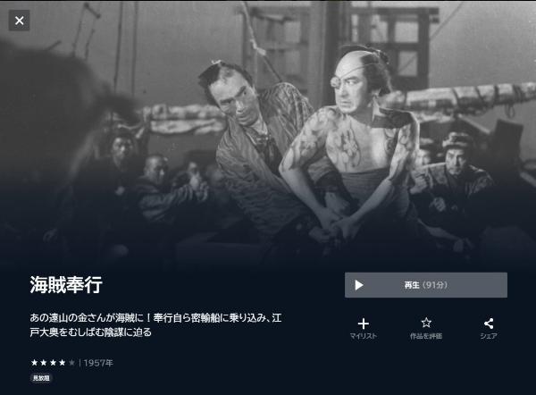 U-NEXTで映画「海賊奉行」の動画をフル視聴