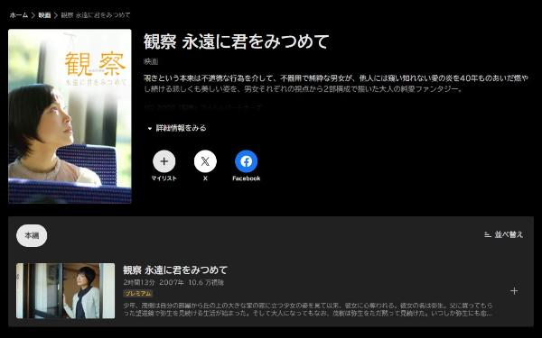 また、映画「観察 ~永遠に君をみつめて~」の関連作品もフルで視聴できます。