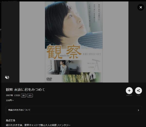 初回お試し期間が30日間あり、映画「観察 ~永遠に君をみつめて~」の動画も330円でフル視聴することができます。