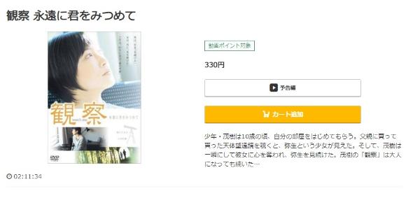 映画「観察 ~永遠に君をみつめて~」は330円でレンタル配信してるので、フルで視聴できます。
