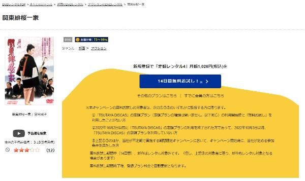 そして、映画「関東緋桜一家」はツタヤディスカスで配信しているので、無料でDVDレンタルが可能です。