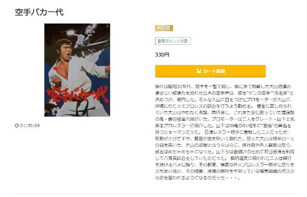 映画「空手バカ一代」は330円でレンタル配信してるので、フルで視聴できます。