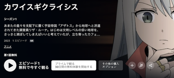 Amazonプライムでアニメ「カワイスギクライシス」の動画を全話無料視聴