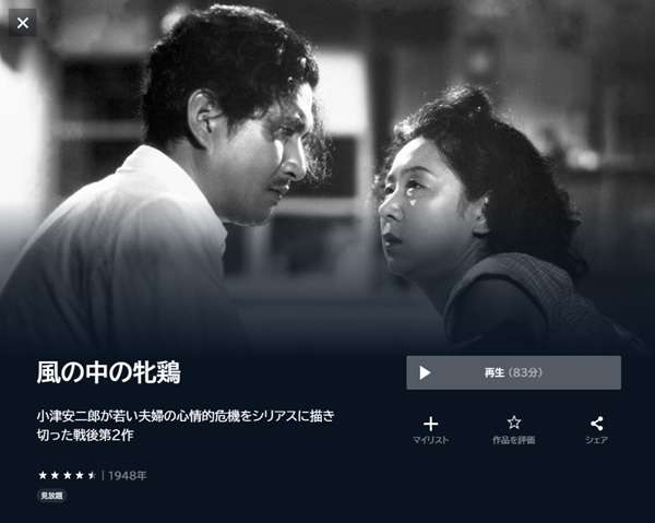 映画「風の中の牝鶏」はAmazonプライムビデオでもフルで視聴することができます。