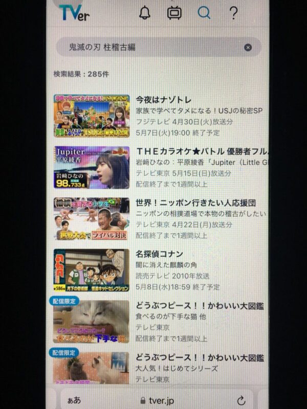 そこで、アニメ「鬼滅の刃 柱稽古編」がTverで見逃し配信をしてるか調査しました。