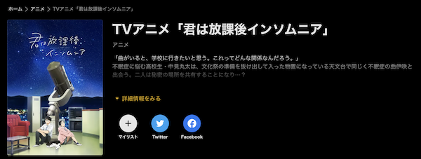 - 「君は放課後インソムニア」が全話見放題で視聴可能