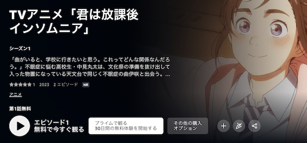 人気の動画配信サイトAmazonプライムでも、アニメ「君は放課後インソムニア」を視聴できるか調査しました。