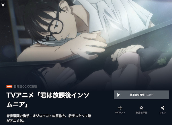 Netflixでアニメ「君は放課後インソムニア」の動画の配信予定