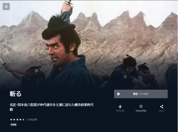 また、映画「斬る」の関連作品の映画もトライアル中にフル視聴が可能です。