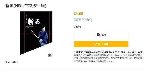 映画「斬る」は330円でレンタル配信してるので、フルで視聴できます。