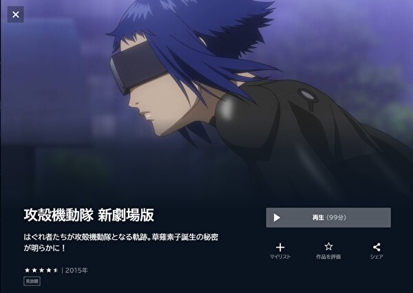 • 映画「攻殻機動隊 新劇場版」がフルで配信中。