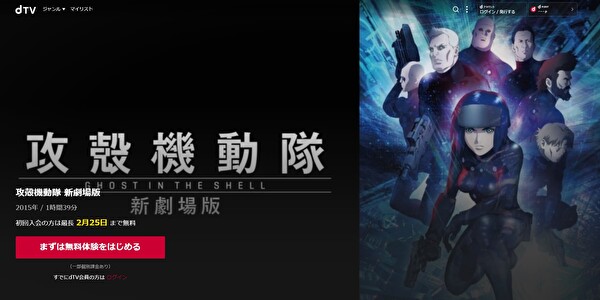 dTVで映画「攻殻機動隊 新劇場版」をフルで無料視聴