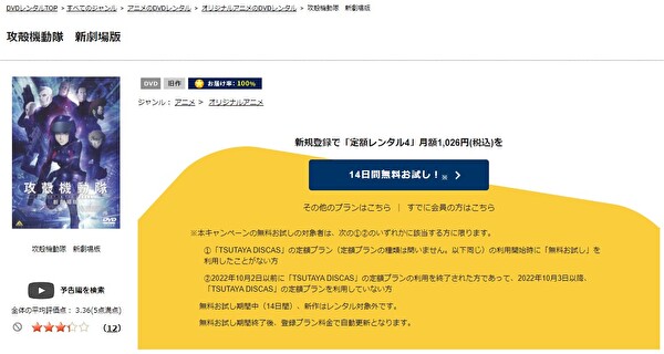 TSUTAYA DISCASで映画「攻殻機動隊 新劇場版」をDVDレンタルで無料視聴