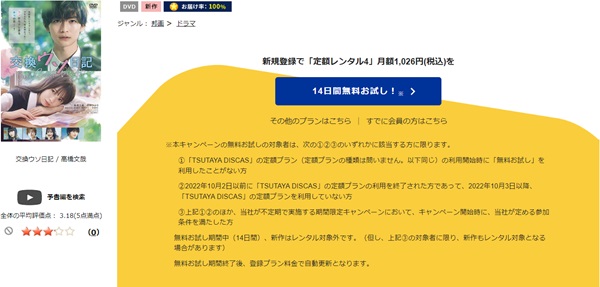 ただ、「交換ウソ日記」は配信しているのですが、TSUTAYA DISCASでは新作作品扱いなので、無料レンタル視聴することができません。