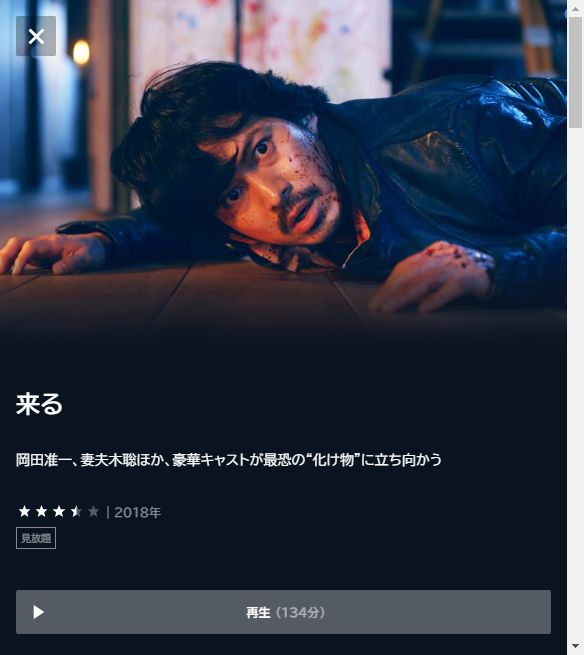 U-NEXTで映画「来る」の動画を無料トライアルでフル視聴
