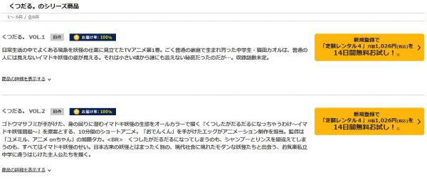 TSUTAYA DISCASでアニメ「くつだる。」の動画を全話無料視聴