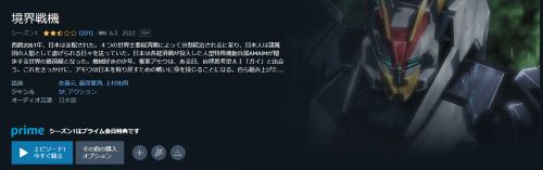人気の動画配信サイトAmazonプライムでも、アニメ「境界戦機 第一部」を視聴できるか調査しました。