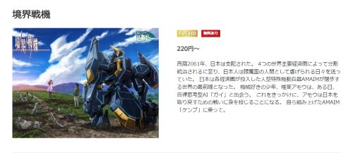Amazonプライムでアニメ「境界戦機 第一部」の動画を全話無料視聴