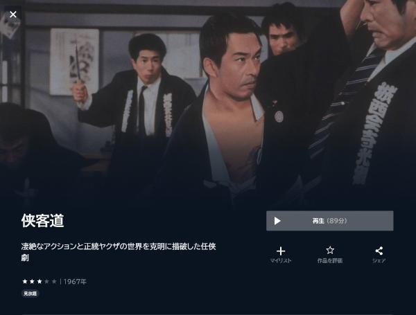 映画「侠客道」が配信されていて、フルで視聴できるおすすめ動画配信サイトは、1つになります。