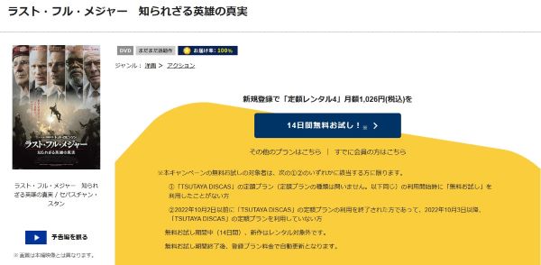 そして、映画「ラスト・フル・メジャー 知られざる英雄の真実」はツタヤディスカスで配信しているので、無料でDVDレンタルが可能です。