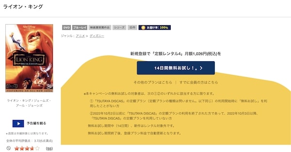 そして、映画「ライオン・キング」はツタヤディスカスで配信しているので、無料でDVDレンタルが可能です。