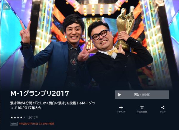 U-NEXTでバラエティ番組「M-1グランプリ2017漫才師が4分間で「とにかく面白い漫才」を披露するM-1グランプリの2017年大会2017年」の動画を無料視聴
