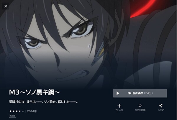 見放題ではありませんが、初回に1,600Ptが貰えるので「M3~ソノ黒キ鋼~」のアニメ動画を全話視聴することができます。