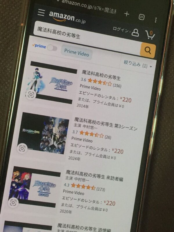 そこで、Amazonプライムビデオでもアニメ「魔法科高校の劣等生」の配信状況を調べました。