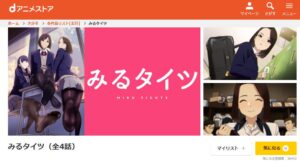 またdアニメストアは、アニメ「みるタイツ」のシリーズや関連動画を全話視聴できます。