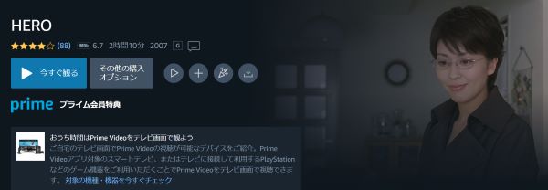 Amazonプライムビデオで映画「劇場版 HERO(2007)」をフルで無料視聴