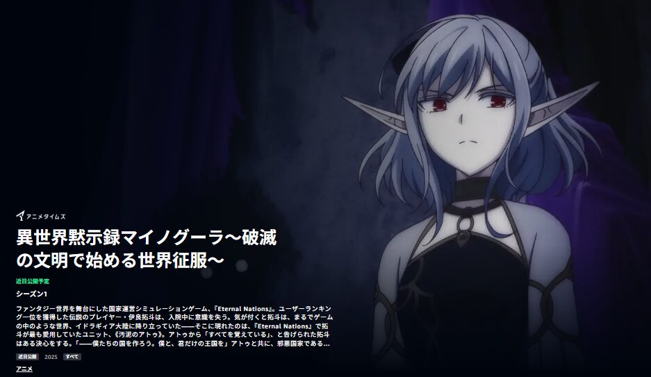 アニメ|異世界黙示録マイノグーラ~破滅の文明で始める世界征服~の動画をフルで無料視聴できる配信サイト