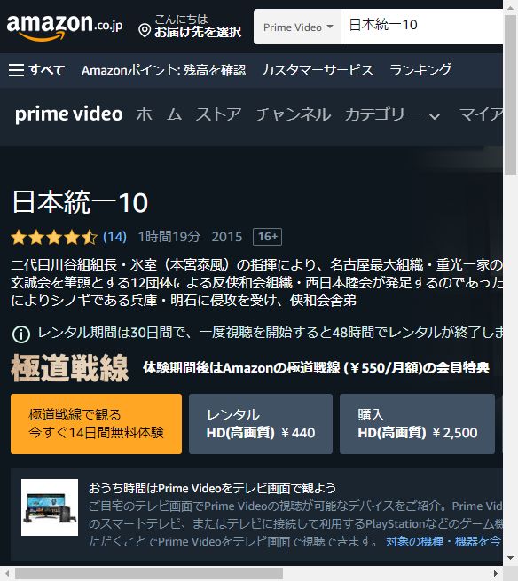 Amazonプライムビデオで映画「日本統一10」をフルで無料視聴