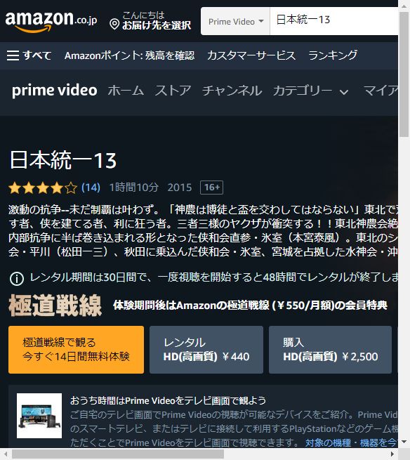 Amazonプライムビデオで映画「日本統一13」をフルで無料視聴