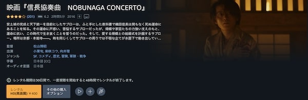 映画「信長協奏曲 NOBUNAGA CONCERTO」はAmazonプライムビデオでもフルで視聴することができます。