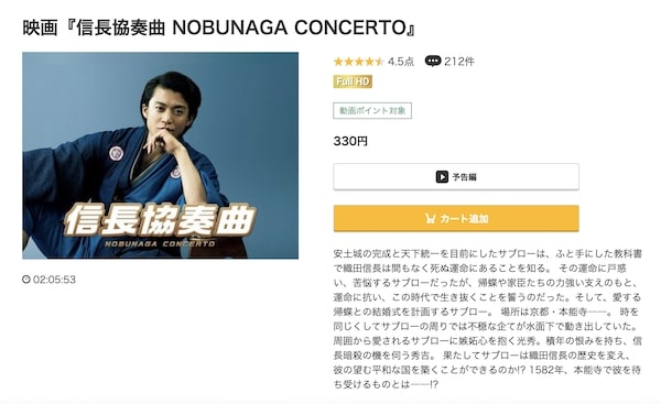 映画「信長協奏曲 NOBUNAGA CONCERTO」は330円でレンタル配信してるので、フルで視聴できます。