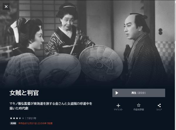 - 映画「女賊と判官」の関連動画も視聴可能。