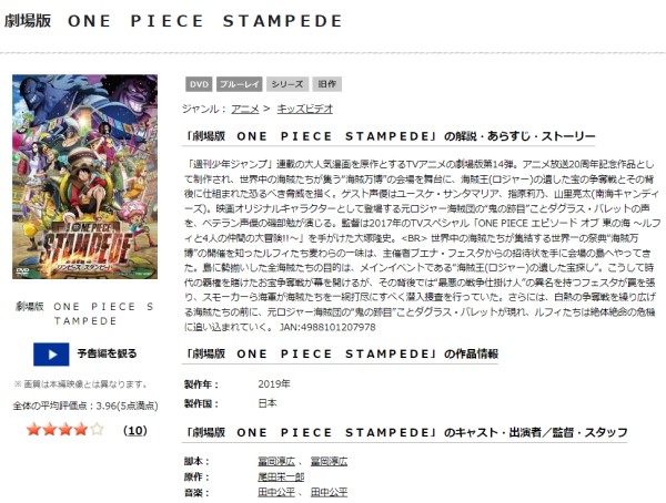 - 映画「ONE PIECE STAMPEDE」がフルで配信中。